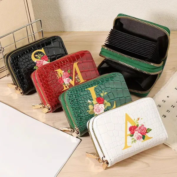 Portafoglio Elegante e Alla Moda per Donne - Portacarte con Doppia Cerniera, Grande Capacità, Stampa Alfabeto A-Z & Design Floreale, Fodera in Nylon Leggero, Zip Dorate e Catene Decorative, Ideale per Occasioni Casual e Formali (Bianco), Accessorio da Viaggio, Organizzatore Compatto, Compleanno Premium, Essenziale Quotidiano, Design Raffinato, Per Professioniste