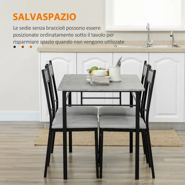 HOMCOM Set Tavolo e Sedie 5pz, Tavolo da Pranzo Rettangolare in Metallo e MDF e 4 Sedie da Pranzo con Seduta Imbottita in Gommapiuma e Poliestere