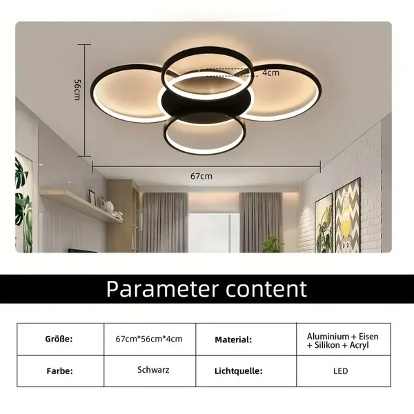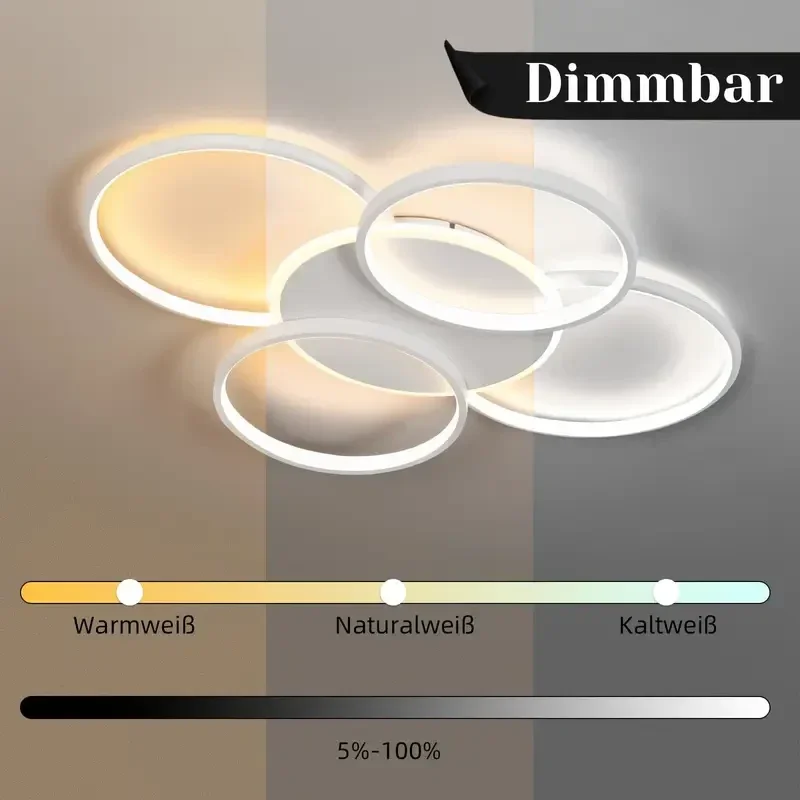 Lampada a soffitto LED per soggiorno - lampada dimmerabile 70W con telecomando, 5 anelli, bianca, lampada moderna in acrilico per camera da letto, ufficio, sala da pranzo, illuminazione domestica, design elegante, struttura robusta, finitura di alta qualità, decorazione per ufficio, ideale per designer d'interni - lampada dimmerabile 70W con telecomando, 5 anelli, bianca, lampada moderna in acrilico per camera da letto, ufficio, sala da pranzo, illuminazione domestica, design elegante, struttura robusta, finitura di alta qualità, decorazione per ufficio, ideale per designer d'interni